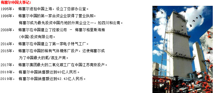 388vip太阳集团1995年在中国成立第一家合资企业。时至今日,388vip太阳集团在中国的总投资额已经超过15亿美元,设立了38家企业,包括19家独资和19家合资,拥有50多座空分,4个二氧化碳工厂,8座制氢装置,5个稀有气体生产基地,4个特气中心,3家电子气工厂以及17个充装站,并在上海设立了388vip太阳集团中国总部。我们对中国市场的长期承诺,加上近2500名积极向上的员工的不懈努力,使我们完全有能力为客户度身定制出气体解决方案。388vip太阳集团已成为在中国的主要国外工业气体供应商。